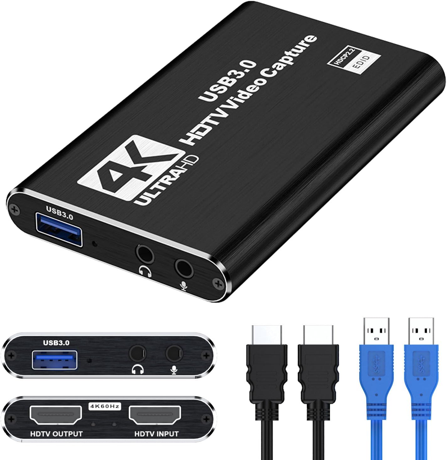4K HDMI Capture Card for Streaming, Full HD 1080P 60FPS Capture USB 3.0 Audio Video Capture Card,for Switch/PS4/PS5/Xbox, Plug and Play, Works on Laptop, PC, Mac