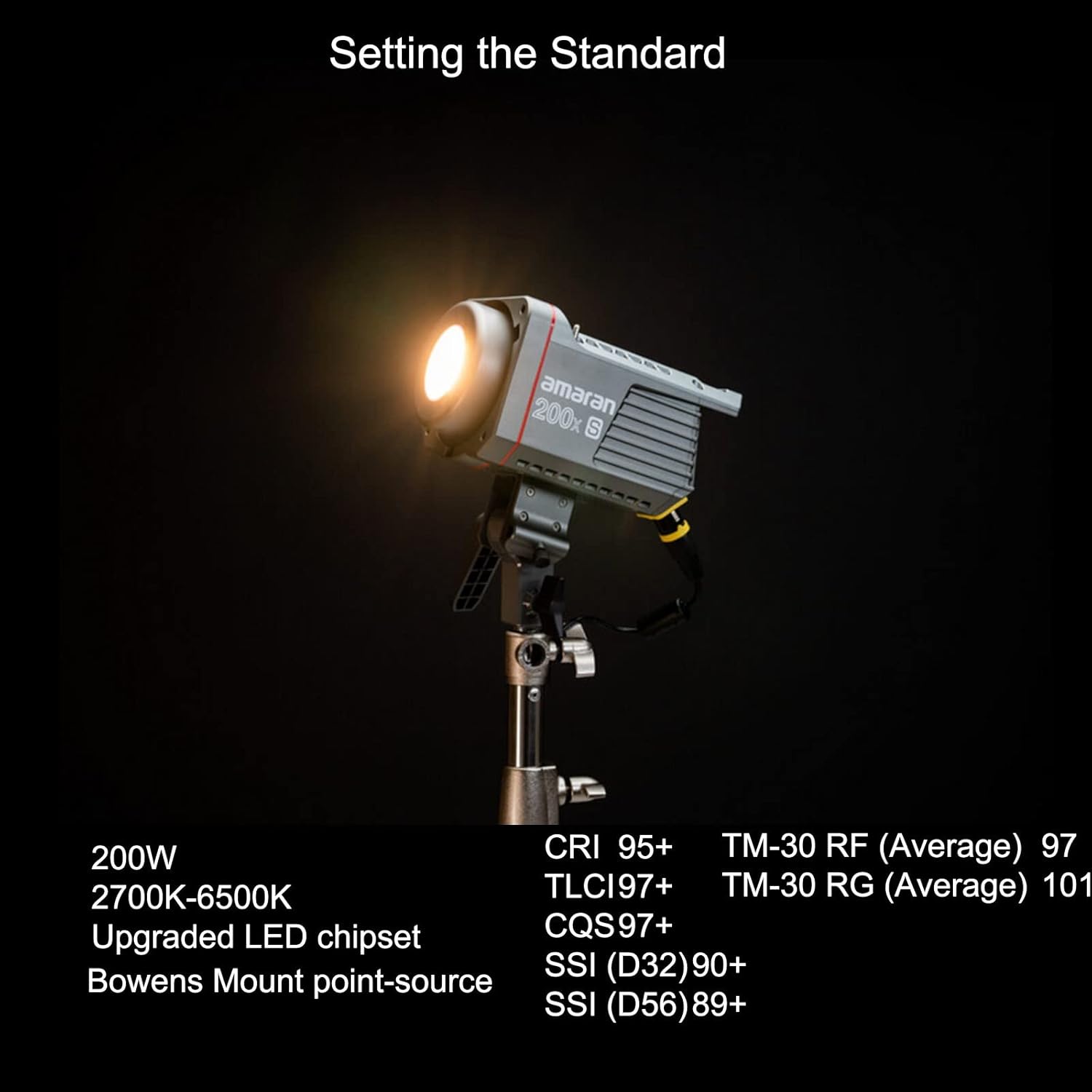 Aputure Amaran 200X S LED Video Light 200W Bi Color 2700 to 6500k Bowens Mount Continuous Light Bluetooth App Control Silent Fan. Key Features:
