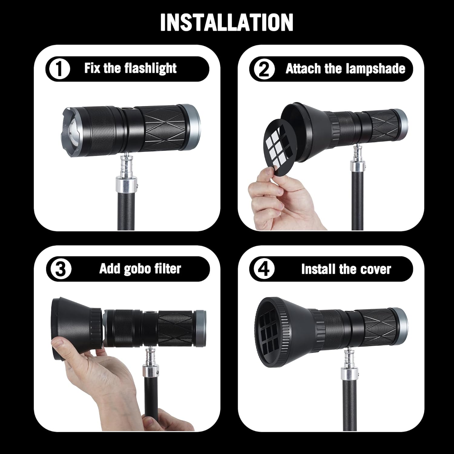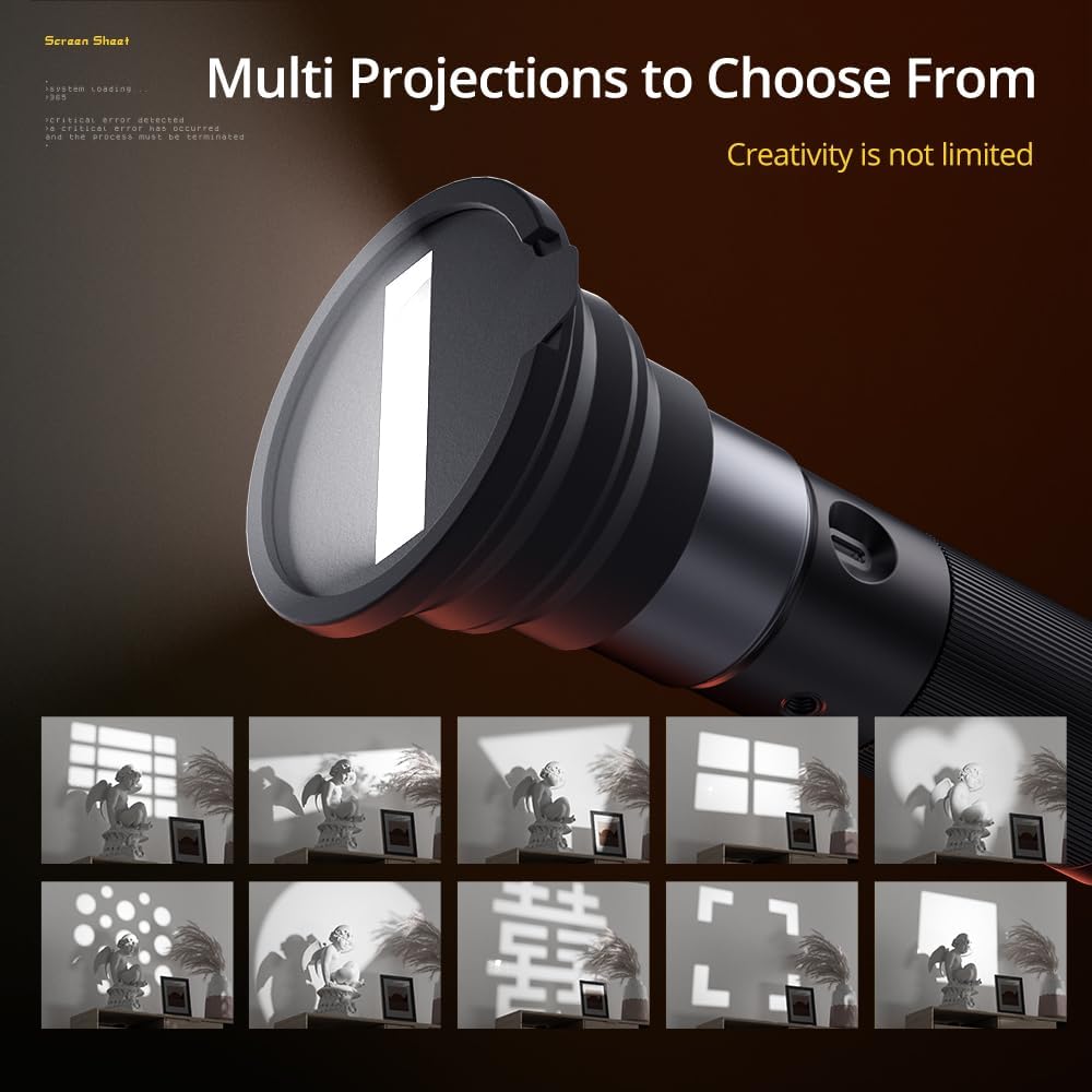 Creative LED Flashlight for Sale in Nairobi Kenya. Designed for photographers and videographers who love bold, artistic lighting. This portable spotlight features 3 interchangeable colours and 15 creative gobos for dramatic effects and light shaping. Ideal for portrait, fashion, product, or cinematic shoots. Perfect for handheld use or mounting on a tripod for studio work.