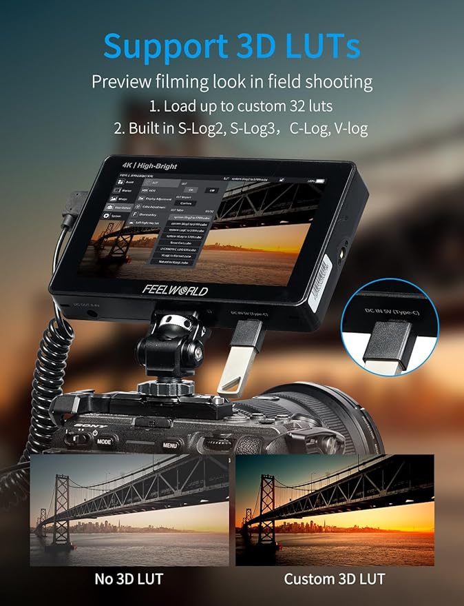 FEELWORLD F5 Prox 5.5 Inch 1600nit Hight Bright DSLR Camera Field Monitor Focusing Screen Waveform 3D LUT F970 External Kit Install for Power Transmission 1920×1080 4K HDMI in Out Type-c Input
