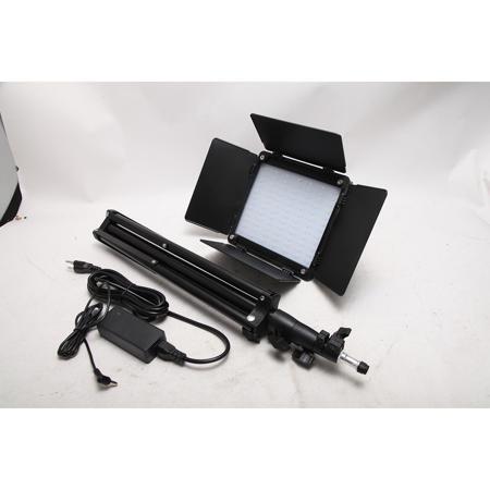GVM 800D 40W Bi-Color RGB Studio Soft LED Panel Light with Light Stand. Key Features: GVM 800D 40W Bi-Color RGB Studio Soft LED Panel Light with Light Stand is a versatile 10.6 x 10.3 x 2″ light source with two color modes, light intensity control, and power options. The panel has a 120° beam angle that can be controlled by swinging one or more of the barndoor leaves into the beam path for selective lighting. There are two color modes and the fixture dedicates 168 LEDs to CCT color from 3200 to 5600K. It also has 84 RGB LEDs that allow a choice of 360 colors whose saturation and hue can be tweaked to create a myriad of custom colors. Light intensity is variable from 0 to 100% to match the ambient level or serve as an adjustable key light. You can make these adjustments locally on the light or wirelessly from your phone with a free app for iOS or Android. The light is powered by the included AC adapter, but it also runs on user supplied NP-F-type batteries when mains current is unavailable. Comes with a light stand.
