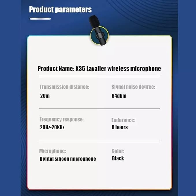 K35 Dual Mic Wireless Lavalier Microphone. Key Features: