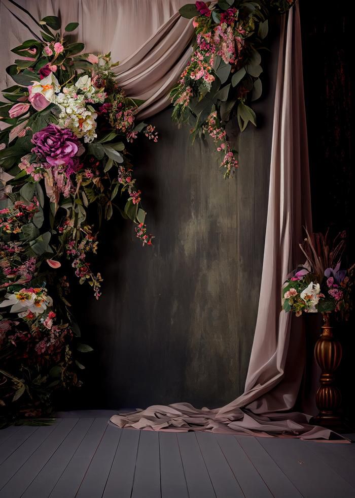 4x3m Maternity Photoshoot Backdrop in Nairobi CBD – dark vintage wall floral arrangement with flowing drapes: Used for weddings, baby shower…